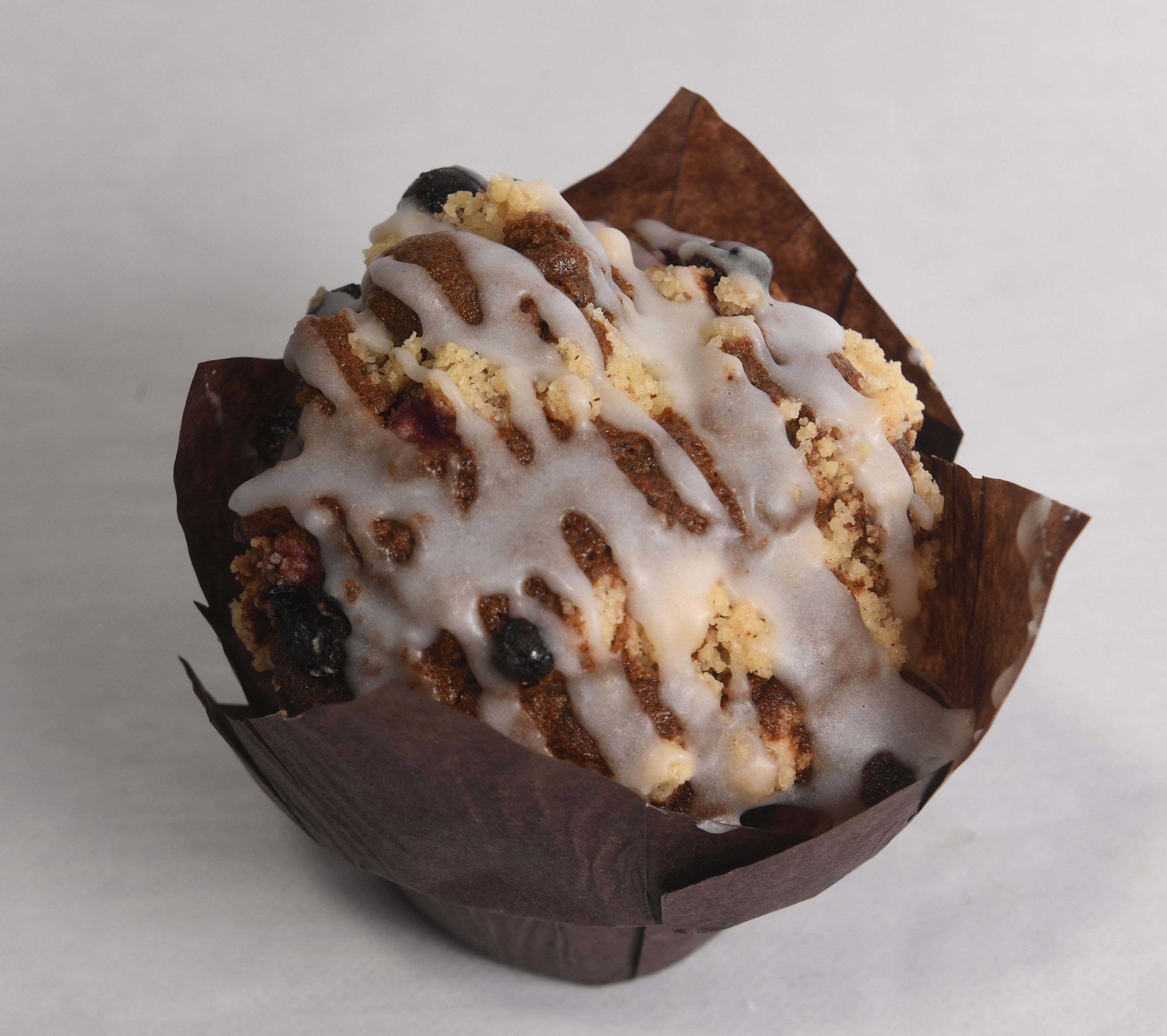 עוגת אוכמניות וקראמבל עם אגוזי פקאן בזיגוג וניל, פרווה