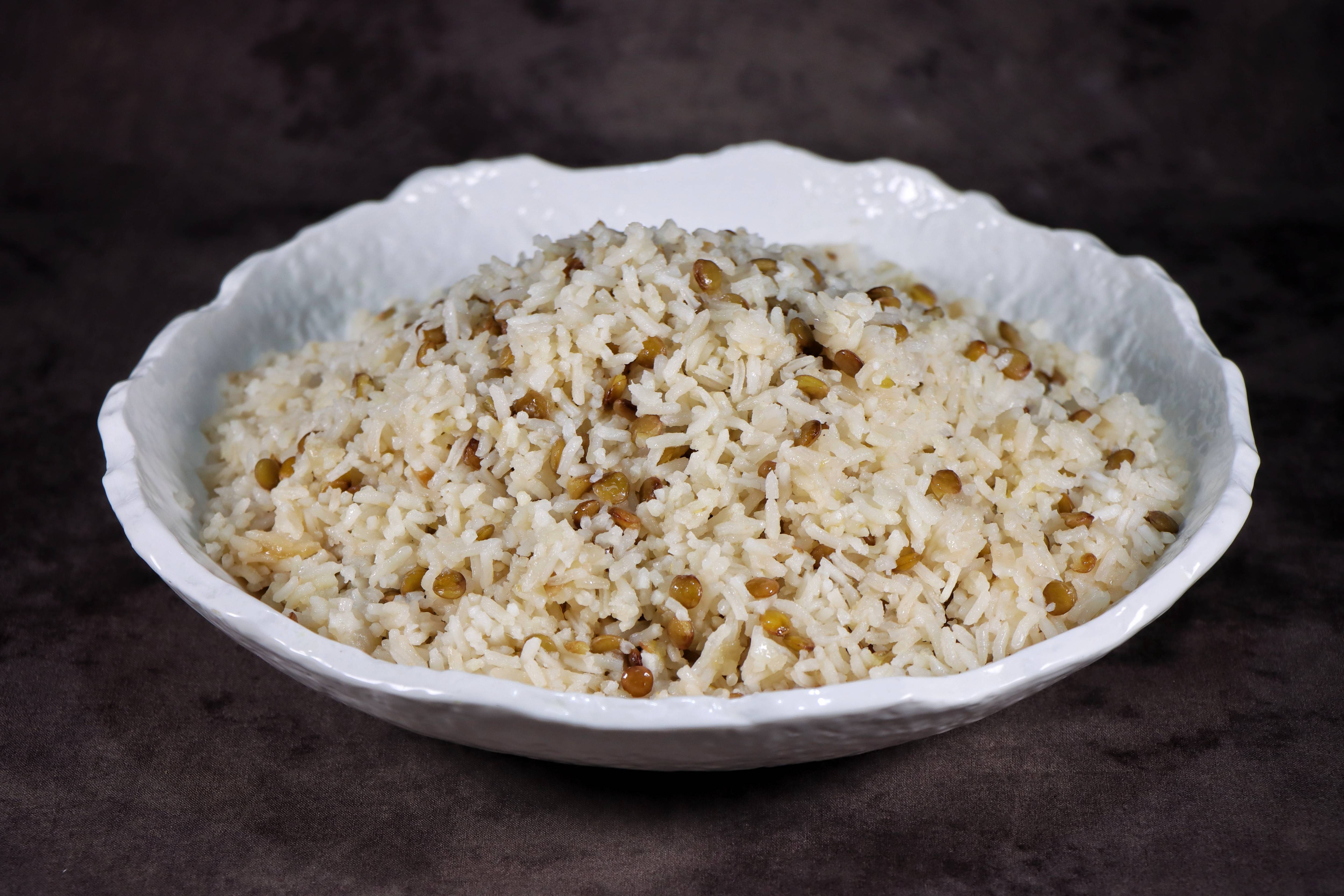 אורז לבן עם בצל מטוגן וגזר